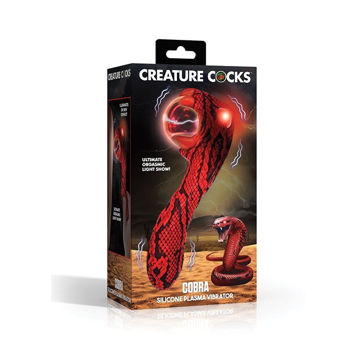 Modeled after a mystical cobra with dark red and black scales, it captivates you with a glowing plasma ball that lights up upon skin contact, offering a mesmerizing and thrilling way to play with yourself or your partner in the dark.