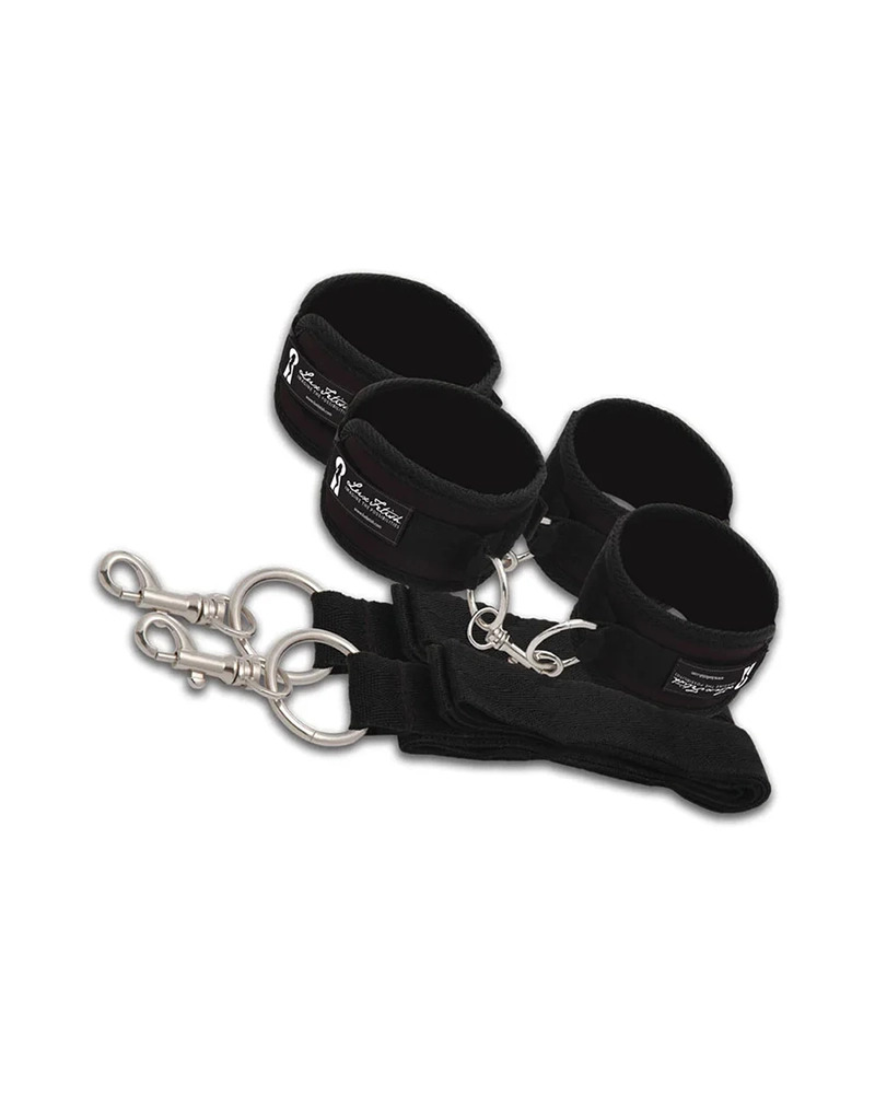 This 7-Piece Bed Spreader is fully adjustable to fit most bed sizes, allowing you to spread your submissive to your liking. The quick-release neoprene and velcro cuffs can be used with or without the restraint system for even more options.
