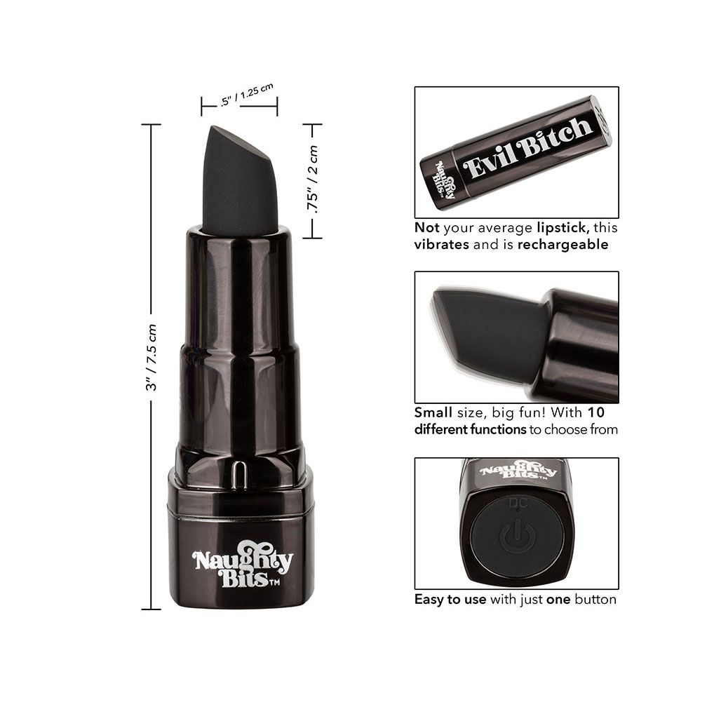 Indulge in 10 high-intensity functions of vibration with the sleek silicone button and hold for 3 seconds to turn on/off. The Naughty Bits collection is made to stand out in any nightstand with eye-catching designs and orgasmic features. The ultra plush silicone and edgy details of this gorgeous mini massager will make even the most stylish lover smiling before and after.