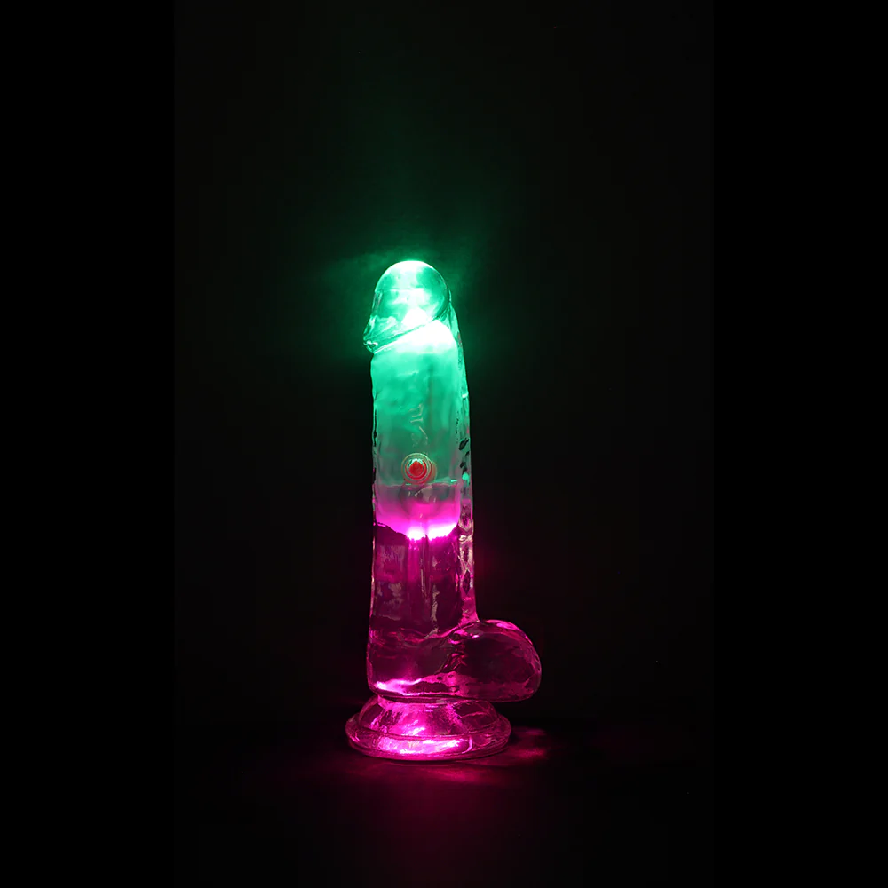 Experience ultimate pleasure with the RealRock light-up vibrating dildo with balls.